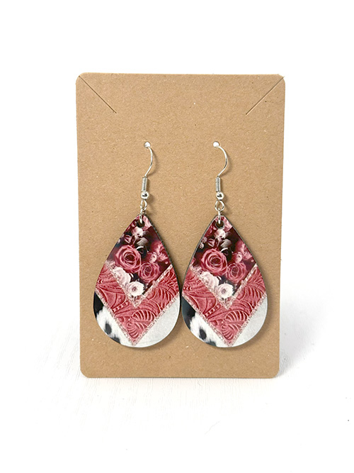 23217 – Teardrop Earrings – Roses, Lace, & Cowhide