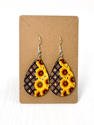 23220 – Teardrop Earrings – Sunflowers on Brown Diamond