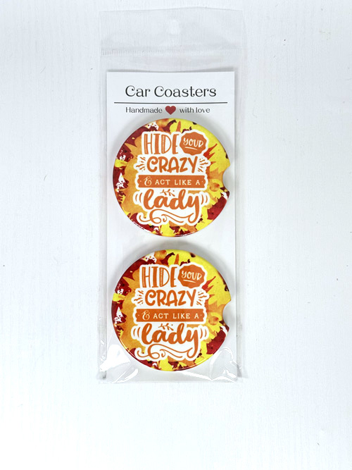 23247 – Ceramic Car Coasters – Hide Your Crazy, Act Like a Lady