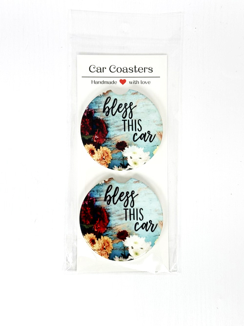 23263 – Ceramic Car Coasters – Bless This Car
