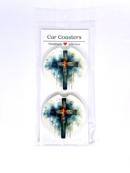 23274 – Ceramic Car Coasters – Grunge Cross