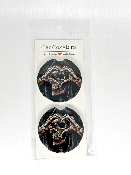 23310 – Ceramic Car Coasters – Skeleton w/ Heart Hands